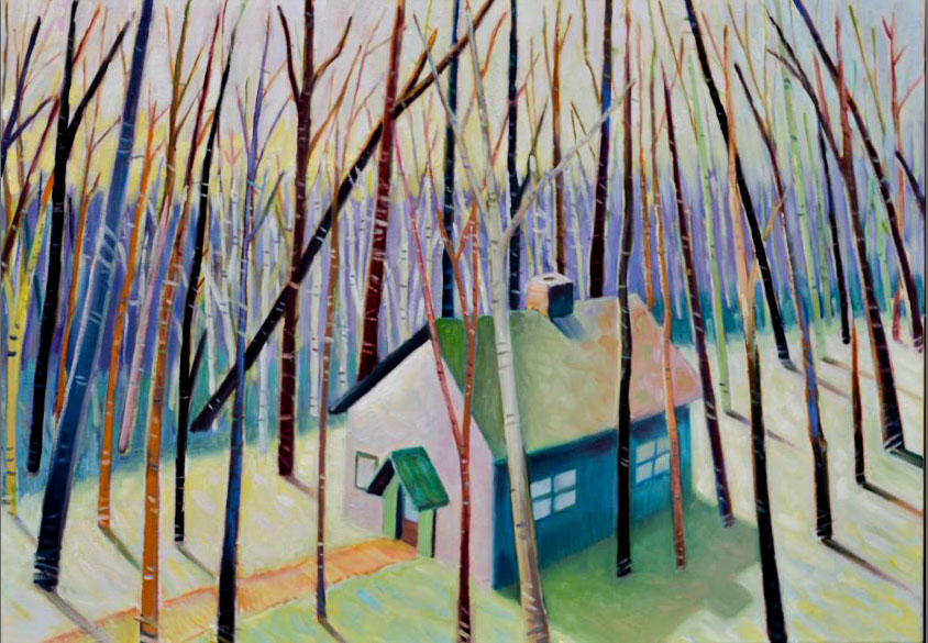 Little house on pink oil on canvas 36 x 52