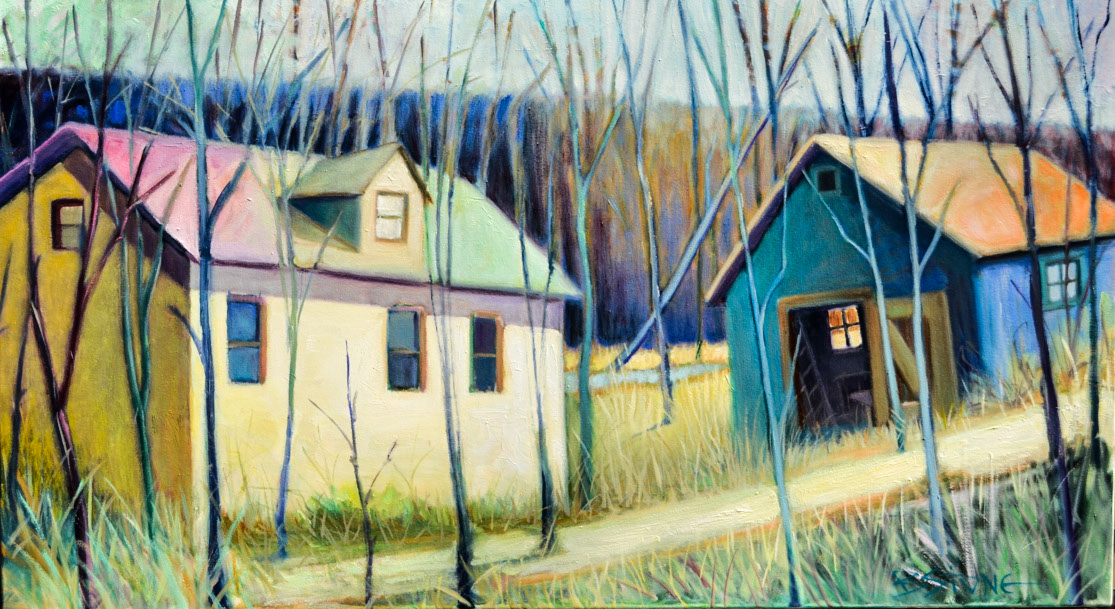Four bungalows oil on canvas 24 x 42