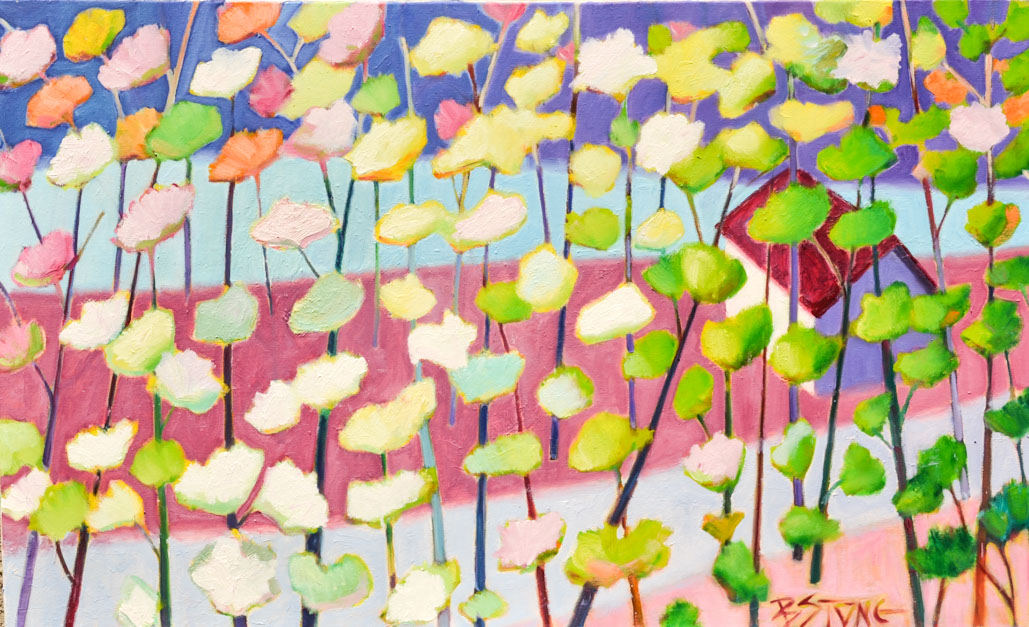 Pink and yellow fields oil on canvas 18 x 24