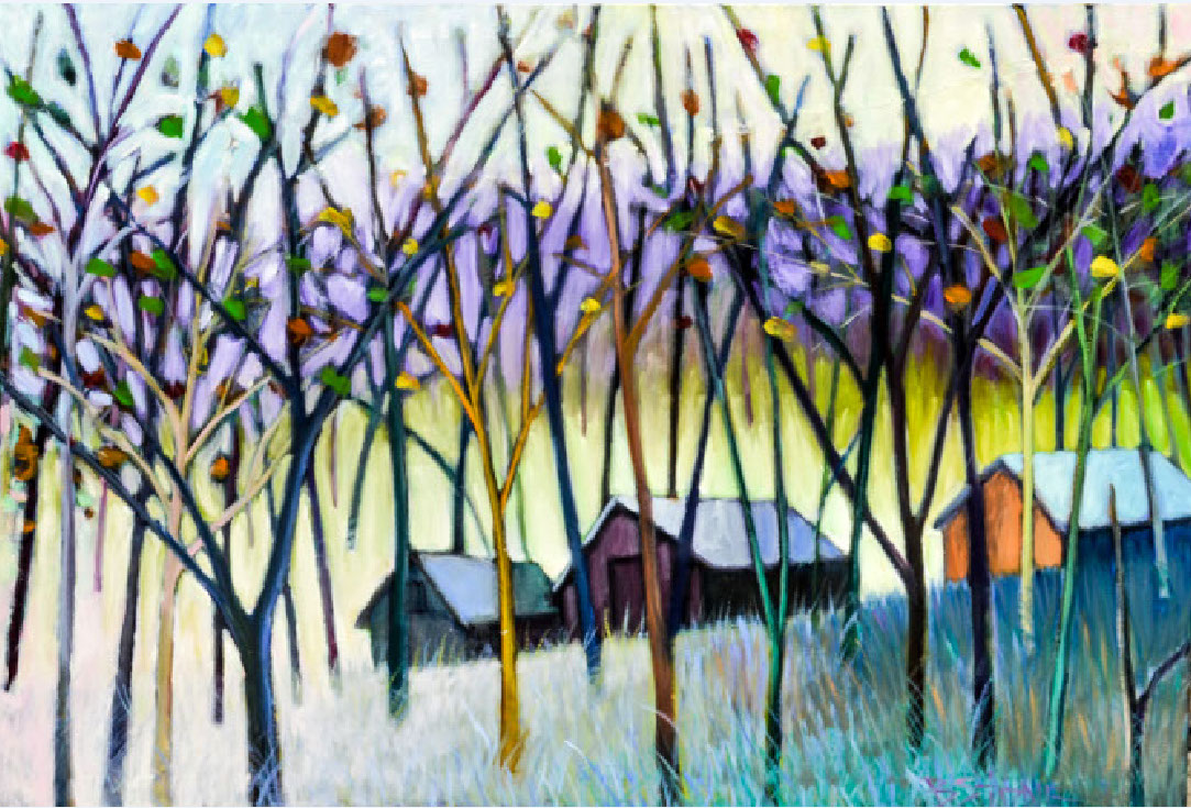 Yellow tree at forest's edge oil on canvas 42 x 50