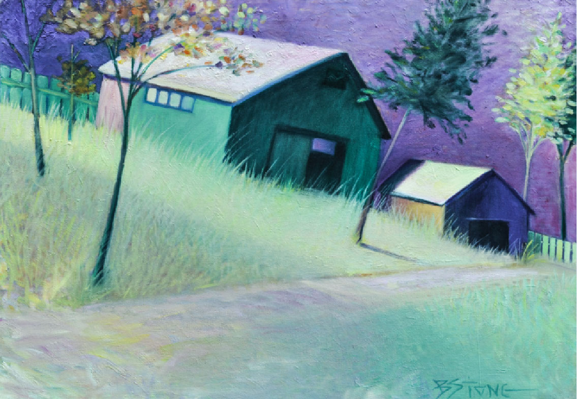 Light blue barn oil on canvas 32 x 44