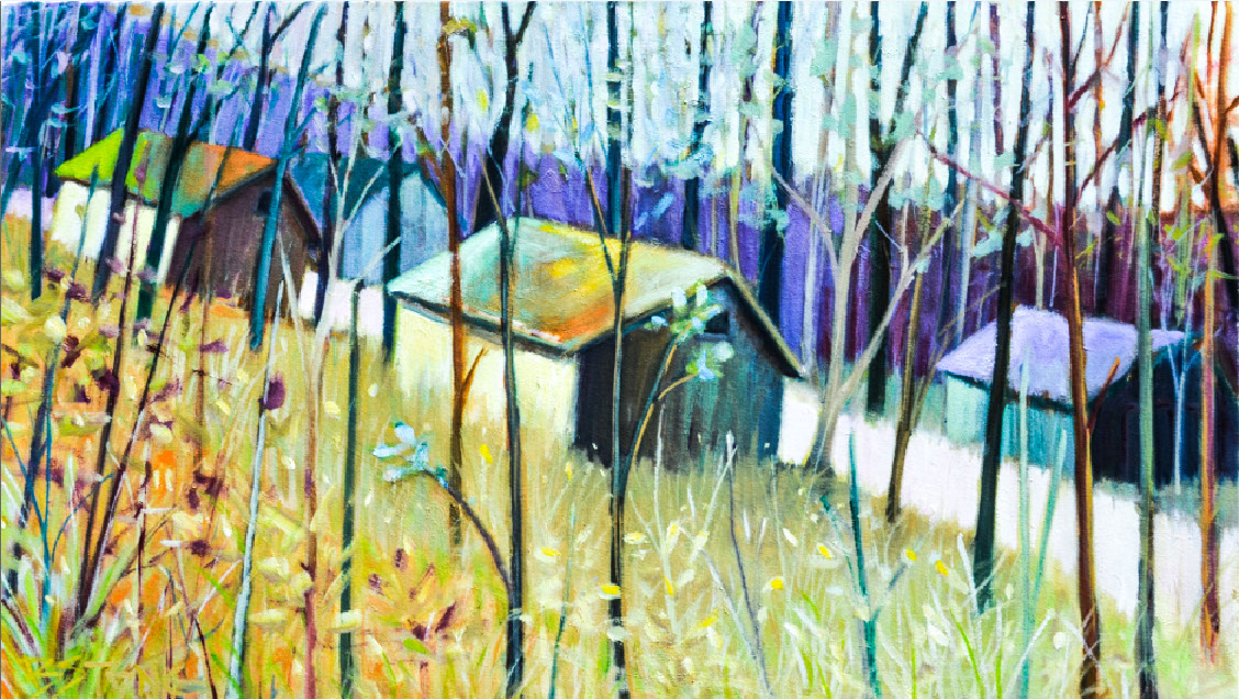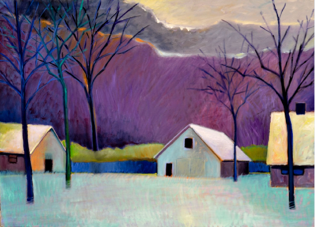 Yellow tree at forest's edge oil on canvas 42 x 50